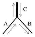 “Y”型存在复线部分,可以采用“高峰分线,低峰并车”的方式,即客流高峰时线路各自 运行,低峰运力过剩时两条线路可在“Y”节点处并车运行,如图 4 所示。根据线路客流时间 分布特征的不同,具体来讲有三种情况: